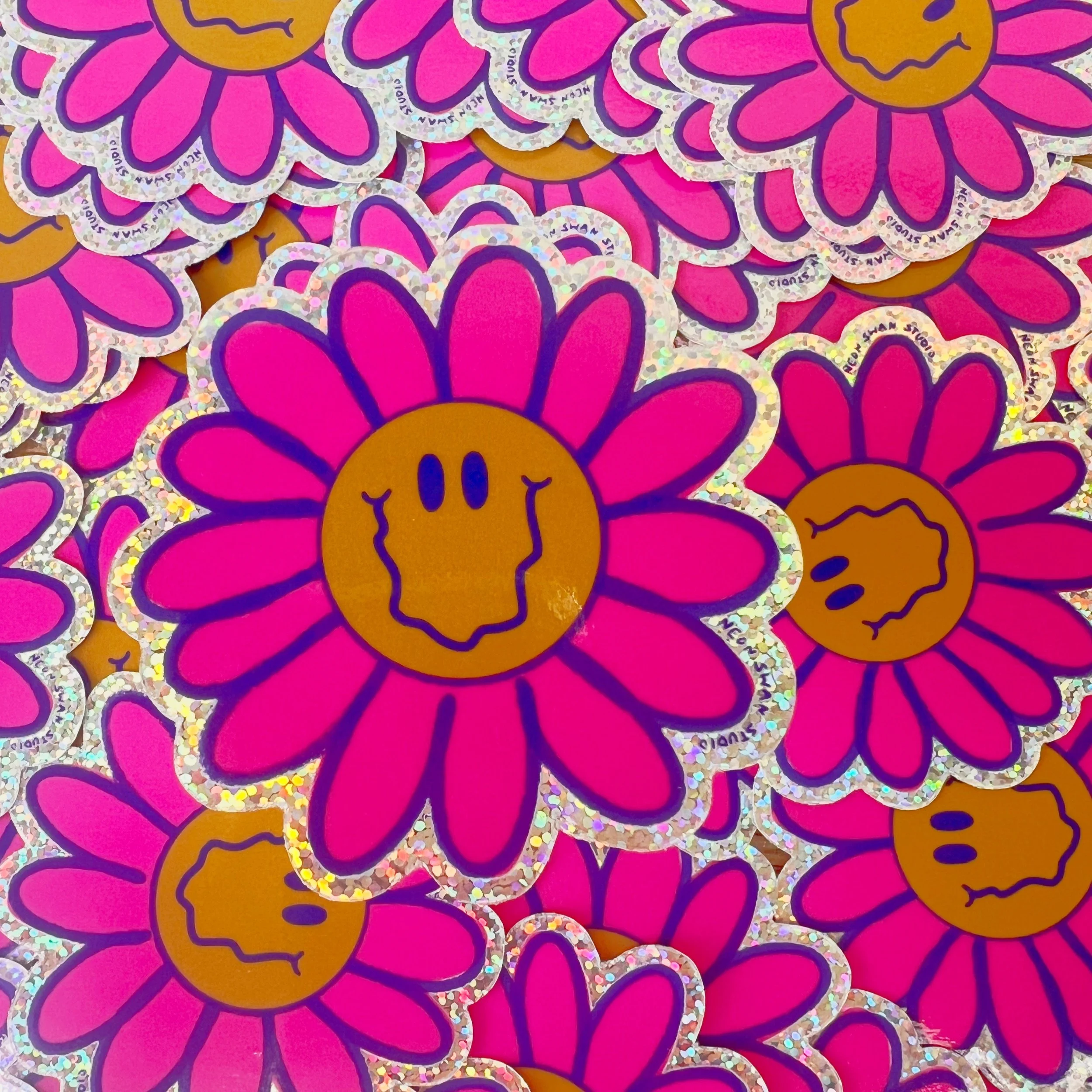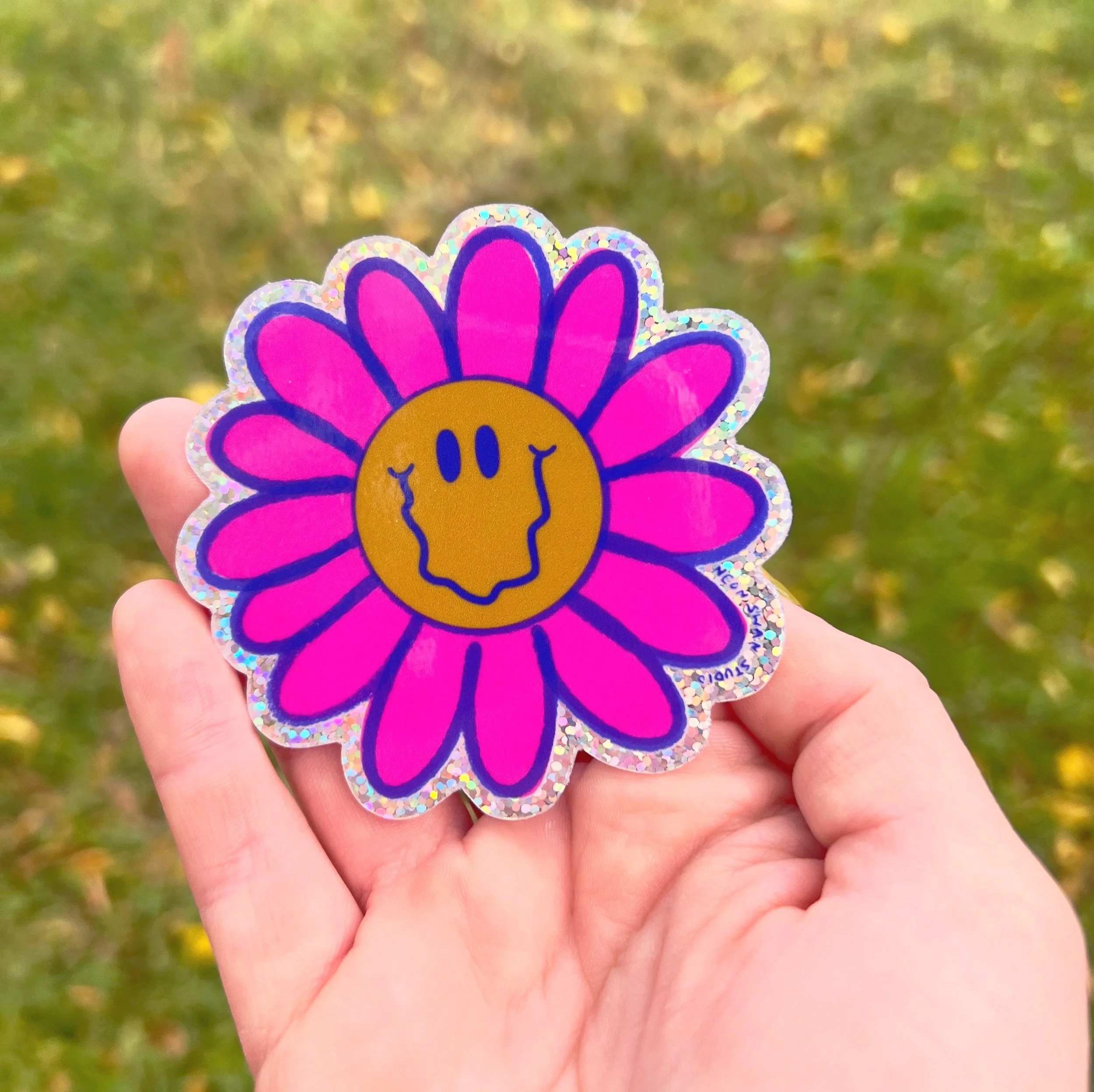 Durable vinyl sticker with a gloss finish and glitter border. Weatherproof and dishwasher safe. Perfect for decorating water bottles, laptops, or whatever brings you joy!